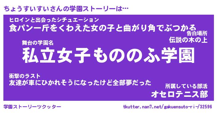 | 男性向けラノベタイトル風あだ名 | 『チョウスイスイアートオンライン』 |