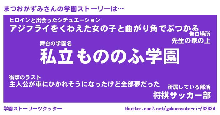 | 男性向けラノベタイトル風あだ名 | 『まつおかずみの憂鬱』 |