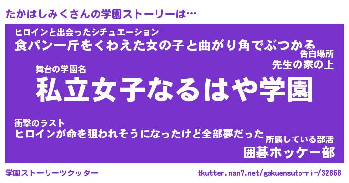 | 先生 | たかはしみく先生が勤める学校名『府立しゃくれ中学校』 |