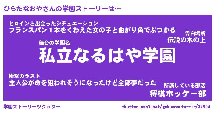 | 伝説のあだ名 | 『伝説のスナイパーひらたなおや』 |