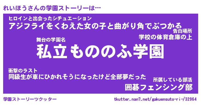 | 男性向けラノベタイトル風あだ名 | 『れいほうの憂鬱』 |