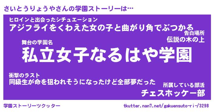 | ツイッター | さいとうりょうやさんのツイッターID『fukuyoka_nyan』 |