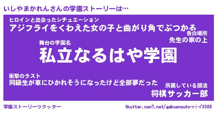 | 胡散臭い通販商品みたいなあだ名 | 『必ず成功する霊験あらたかなお札…その名も「いしやまかれん」』 |