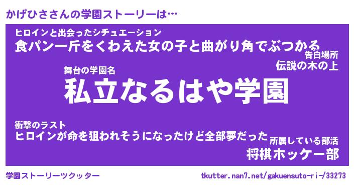 | 男性向けラノベタイトル風あだ名 | 『かげひさの憂鬱』 |
