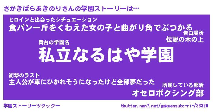 | 男性向けラノベタイトル風あだ名 | 『さかきばらあきのりの憂鬱』 |