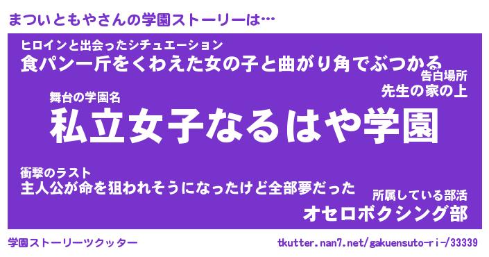 | 肩書あだ名 | 『まついともや店長』『まついともや班長』 |