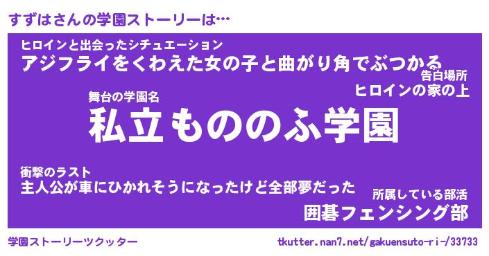 | 男性向けラノベタイトル風あだ名 | 『すずはの憂鬱』 |