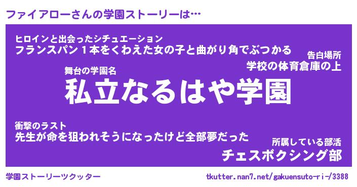 | 男性向けラノベタイトル風あだ名 | 『ファイアローの憂鬱』 |