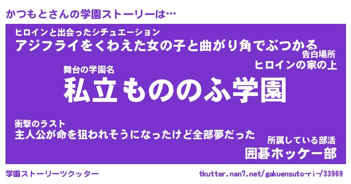 | 男性向けラノベタイトル風あだ名 | 『かつもとの憂鬱』 |