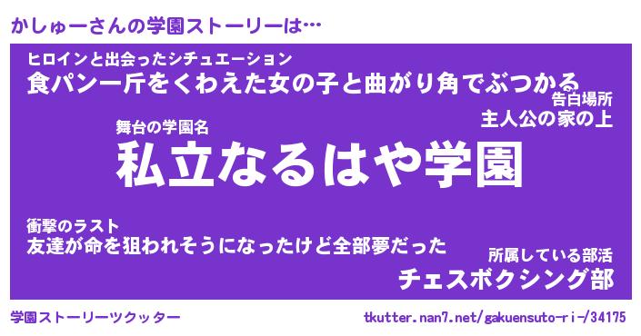 | 男性向けラノベタイトル風あだ名 | 『かしゅーの憂鬱』 |