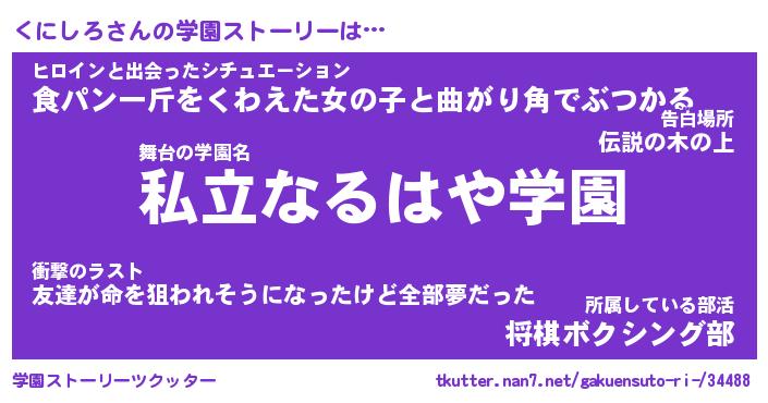 | 男性向けラノベタイトル風あだ名 | 『くにしろの憂鬱』 |