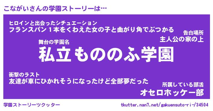 | 男性向けラノベタイトル風あだ名 | 『こながいの憂鬱』 |