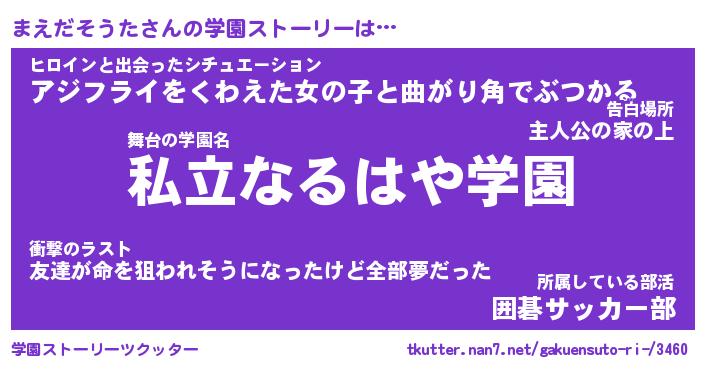 | 男性向けラノベタイトル風あだ名 | 『まえだそうたの憂鬱』 |