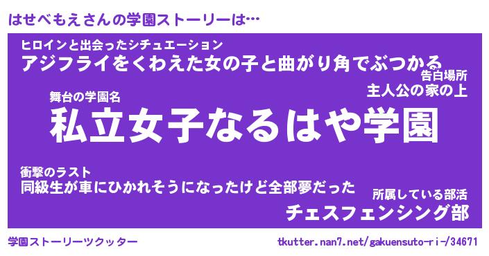 | ファンタジー風あだ名 | 『ハセフェル』『エターナルハセベモエー』 |