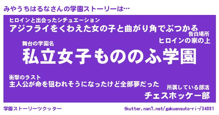 | 女子向けラノベタイトル風あだ名 | 『みやうちはるな姫と円卓の騎士』 |