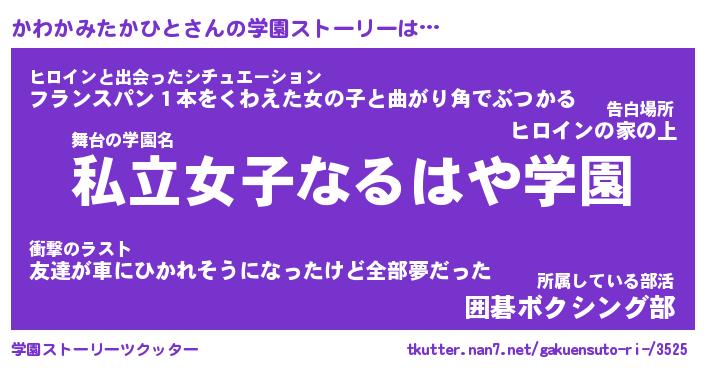 | 胡散臭い通販商品みたいなあだ名 | 『億万長者になれる水晶球…その名も「かわかみたかひと」』 |