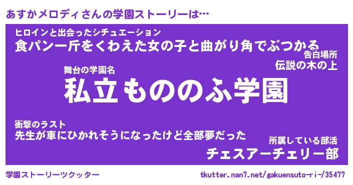 | 男性向けラノベタイトル風あだ名 | 『あすかメロディの憂鬱』 |