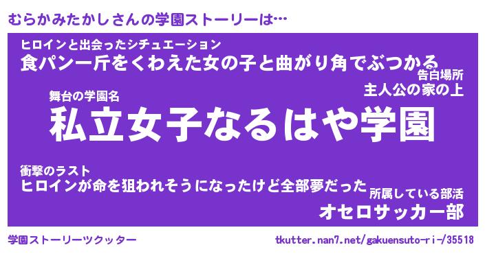 | 女子向けラノベタイトル風あだ名 | 『誰かこのむらかみたかしを説明してください! ~契約から始まるウェディング~』 |