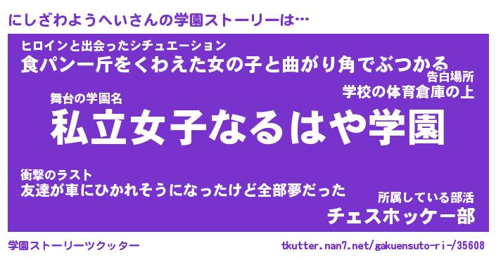 | 女子向けラノベタイトル風あだ名 | 『にしざわようへい姫と円卓の騎士』 |