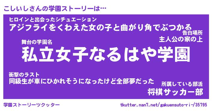 | 告白場所 先生の家の上 …「ふぃぎゅこ」 | 2月17日 06:24 |