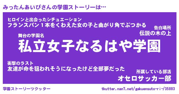 | 伝説のあだ名 | 『封印されしスナイパーみったんあいぴ』 |