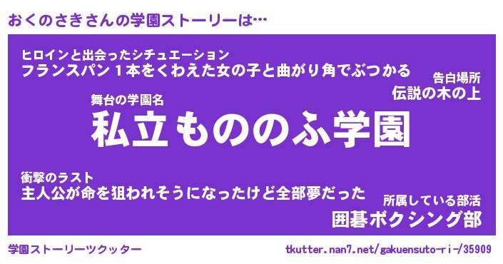 | 男性向けラノベタイトル風あだ名 | 『おくのさきの憂鬱』 |