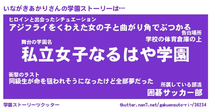 | 男性向けラノベタイトル風あだ名 | 『イナガキアカリアートオンライン』 |