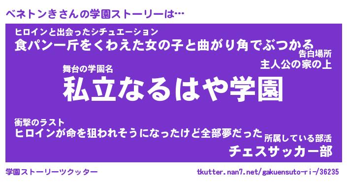 | ファンタジー風あだ名 | 『ベネフェル』『エターナルベネトンキー』 |