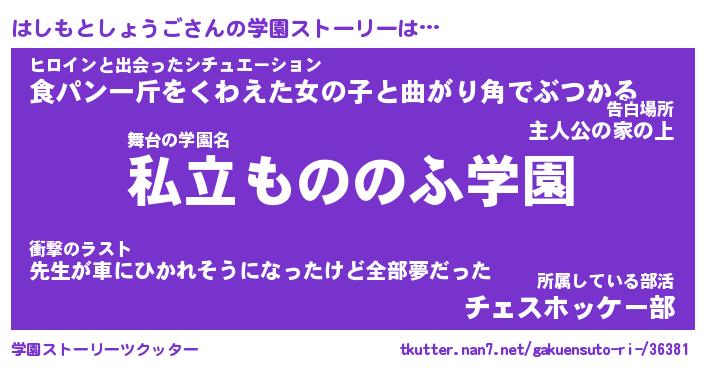 | 男性向けラノベタイトル風あだ名 | 『はしもとしょうごの憂鬱』 |