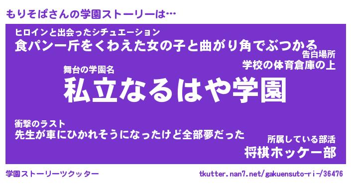 | 伝説のあだ名 | 『伝説のスナイパーもりそば』 |