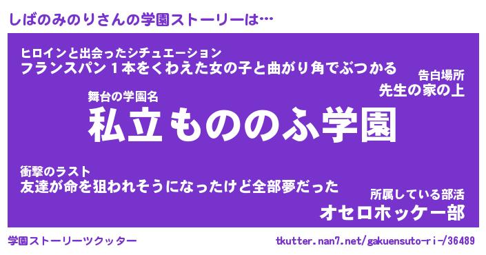 | 男性向けラノベタイトル風あだ名 | 『しばのみのりの憂鬱』 |