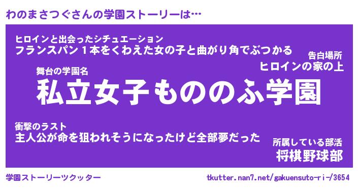 | 男性向けラノベタイトル風あだ名 | 『ワノマサツグアートオンライン』 |