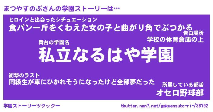 | 男性向けラノベタイトル風あだ名 | 『まつやすのぶの憂鬱』 |