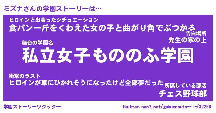 | ヘコむあだ名 | 『ミズにゅー』『牛乳』『ミズぷりん』 |