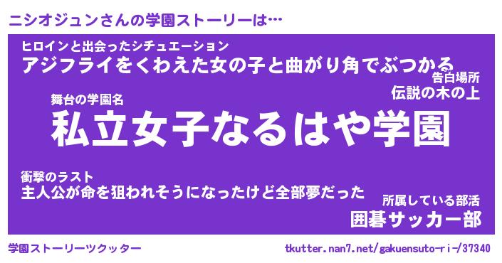 | 伝説のあだ名 | 『封印されしスナイパーニシオジュン』 |