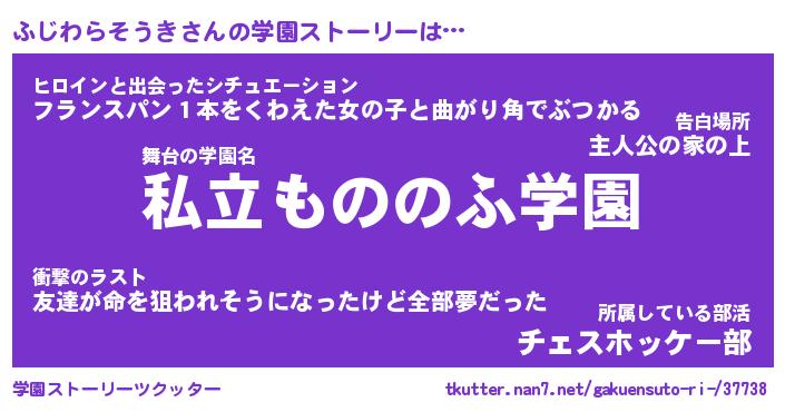 | 女子向けラノベタイトル風あだ名 | 『(仮)ふじわらそうきのやんごとなき事情』 |