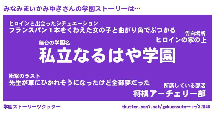 | 女子向けラノベタイトル風あだ名 | 『みなみまいかみゆき姫と円卓の騎士』 |