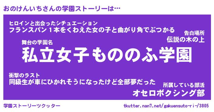 | 男性向けラノベタイトル風あだ名 | 『オノケンイチアートオンライン』 |