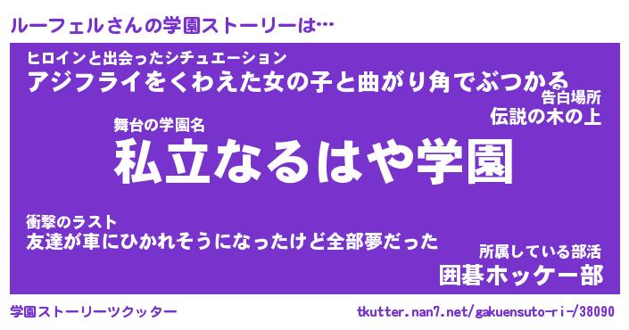 | 告白場所 先生の家の上 …「ふぃぎゅこ」 | 2月17日 06:24 |