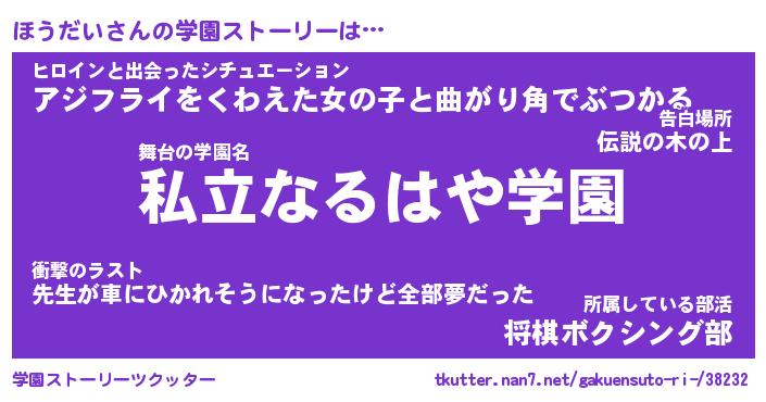 | 告白場所 先生の家の上 …「ふぃぎゅこ」 | 2月17日 06:24 |