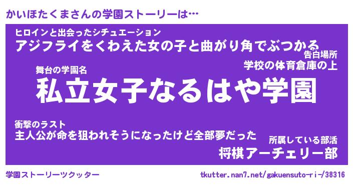 | 告白場所 先生の家の上 …「ふぃぎゅこ」 | 2月17日 06:24 |