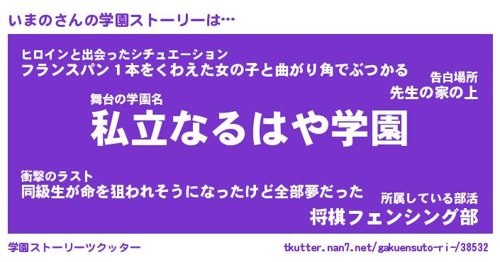 | 告白場所 先生の家の上 …「ふぃぎゅこ」 | 2月17日 06:24 |