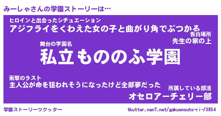 | 男性向けラノベタイトル風あだ名 | 『みーしゃの憂鬱』 |