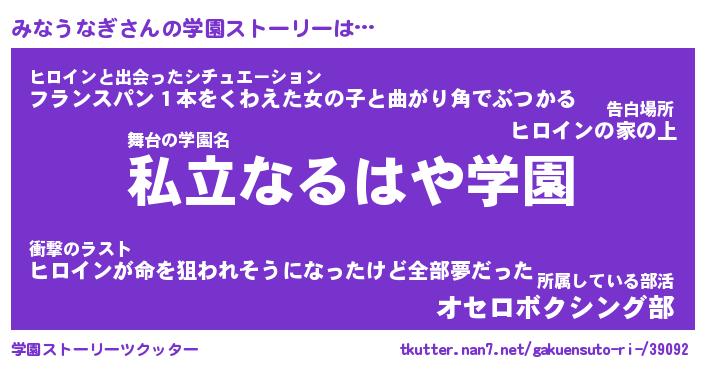 | 女子向けラノベタイトル風あだ名 | 『(仮)みなうなぎのやんごとなき事情』 |