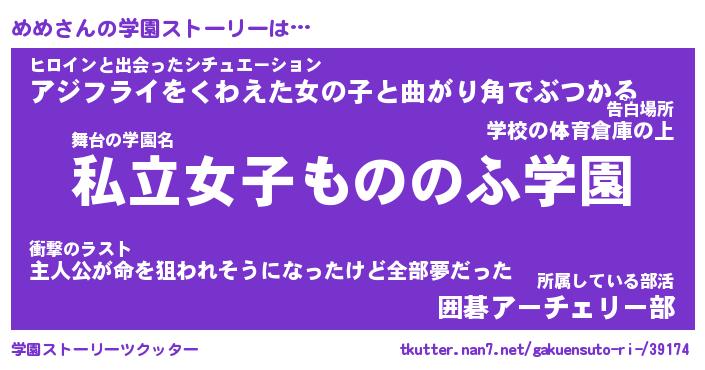 | ファンタジー風あだ名 | 『メメフェル』『エターナルメメー』 |