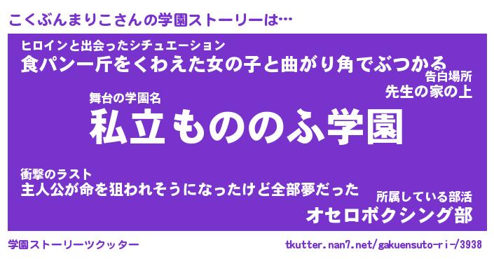 | 女子向けラノベタイトル風あだ名 | 『(仮)こくぶんまりこのやんごとなき事情』 |
