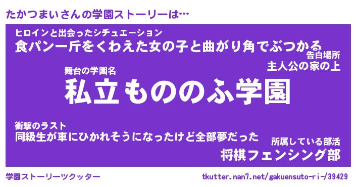| 男性向けラノベタイトル風あだ名 | 『たかつまいの憂鬱』 |