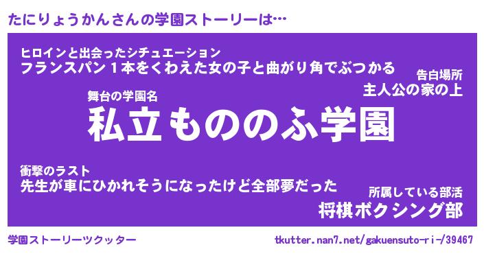 | 男性向けラノベタイトル風あだ名 | 『たにりょうかんの憂鬱』 |