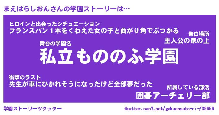 | 告白場所 先生の家の上 …「ふぃぎゅこ」 | 2月17日 06:24 |