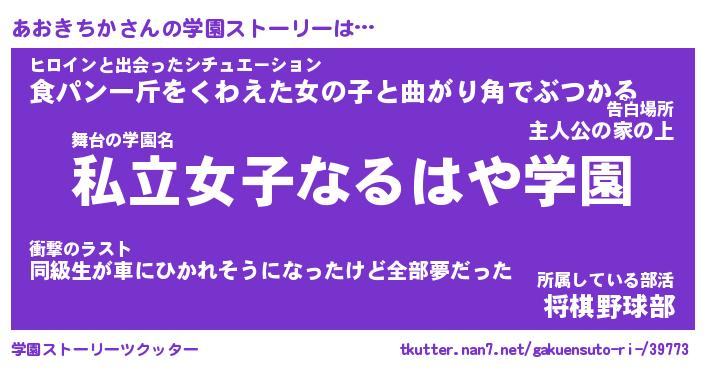 | 伝説のあだ名 | 『封印されしスナイパーあおきちか』 |